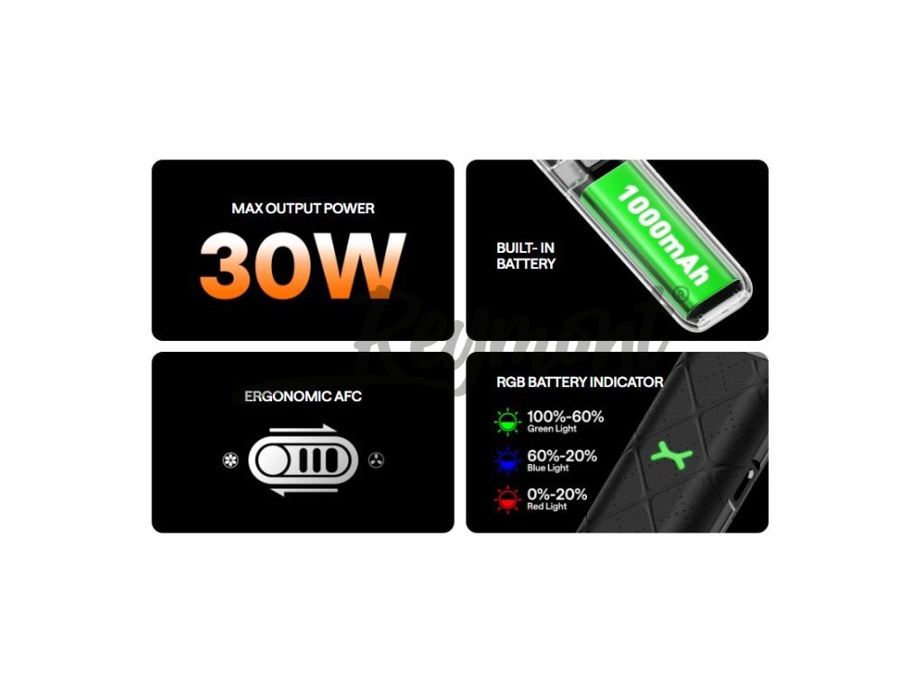 Nejpopulárnější řada elektronických cigaret s POD systémem Xlim od společnosti OXVA představuje model GO, který by neměl chybět ve vapingové výbavě MTL a RDL uživatelů. Tělo baterie s vestavěným monočlánkem o kapacitě 1000mAh je pokryto prvotřídní umělou kůží pro pohodlné držení a jedinečný designe. Autentickou chuť liquidu obstarává automatický výkon až 30W, AFC airflow a populární cartridge V3 s vrchním plněním. V obsahu balení naleznete cartridge Xlim o odporu 0,8ohm, avšak Xlim GO zvládne všechny odpory cartridgí V3 a EZ.