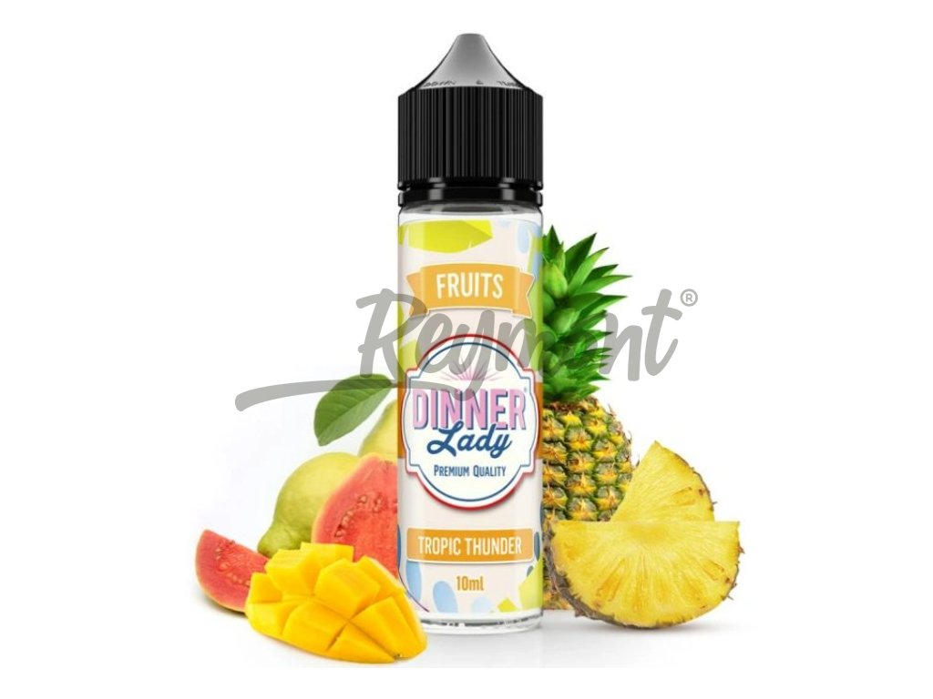 Výrazné noty šťavnatého ananasu, manga a guavy doprovázené jemnějšími tóny jablka, citrusů a sladké marakuji s lehkým chladivým koncem... Společnost Dinner Lady je známá svými prémiovými liquidy, které si oblíbili vapeři po celém světě. Nyní tento světově uznávaný výrobce z Velké Británie představuje i prémiové příchutě ve stylu Shake and Vape. Balení obsahuje 10ml příchutě v 60ml Chubby lahvičce. Uživatel tak pouze přidá bázi do lahvičky, zatřese s ní a má hotový e-liquid.... Jedná se o koncentrát, který se kape do báze. ...nejedná se o hotový liquid.