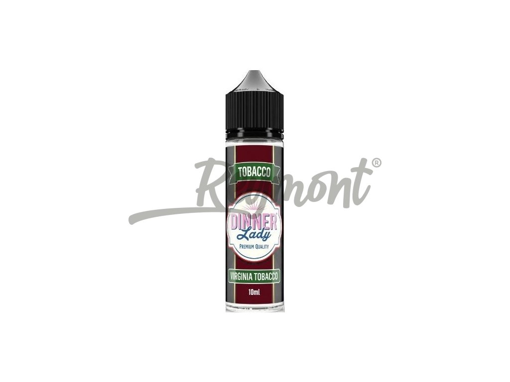 Virginia tabák je jeden z nejoblíbenějších a právě nyní si tuto chuť můžete užít i ve vašem zařízení!.. Společnost Dinner Lady je známá svými prémiovými liquidy, které si oblíbili vapeři po celém světě. Nyní tento světově uznávaný výrobce z Velké Británie představuje i prémiové příchutě ve stylu Shake and Vape. Balení obsahuje 10ml příchutě v 60ml Chubby lahvičce. Uživatel tak pouze přidá bázi do lahvičky, zatřese s ní a má hotový e-liquid.... Jedná se o koncentrát, který se kape do báze. ...nejedná se o hotový liquid.